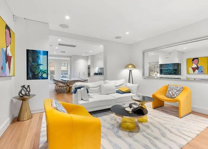 この200m²のアパートからシドニー国際空港までは5キロメートルで、ガーデンアイランドからわずか0.8kmです。 観光スポットとしては、Luxurious 3-Story Terrace In Potts Pointアパートメントすぐ近くのミセス・マクアリーの椅子などがあります。 アパートから徒歩で25分以内のところにあるロックスにも行くことができます。